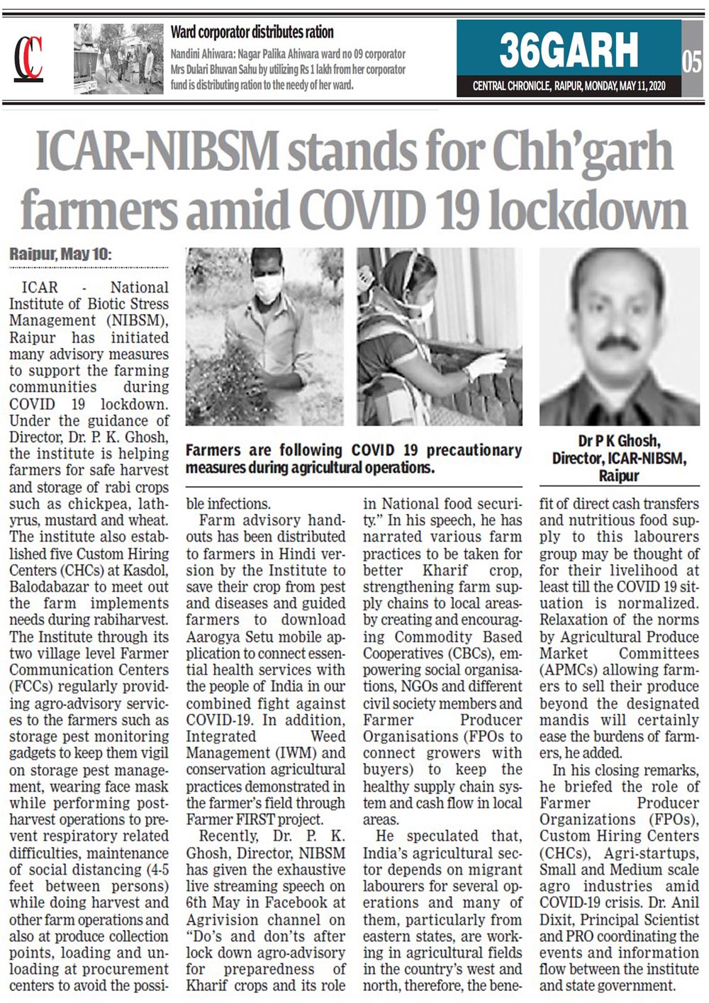 ICAR-NIBSM stands for Chhattisgarh farmers amid COVID 19 lock down