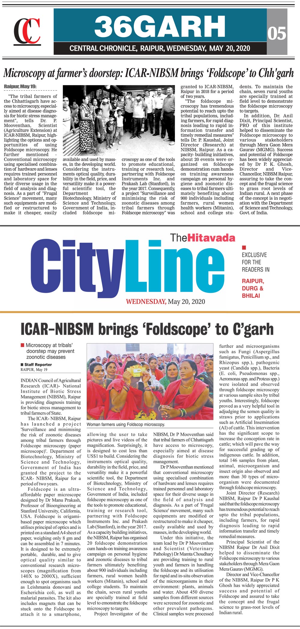 Microscopy at farmer's doorstep ICAR-NIBSM brings Foldscope to Chhattisgarh
