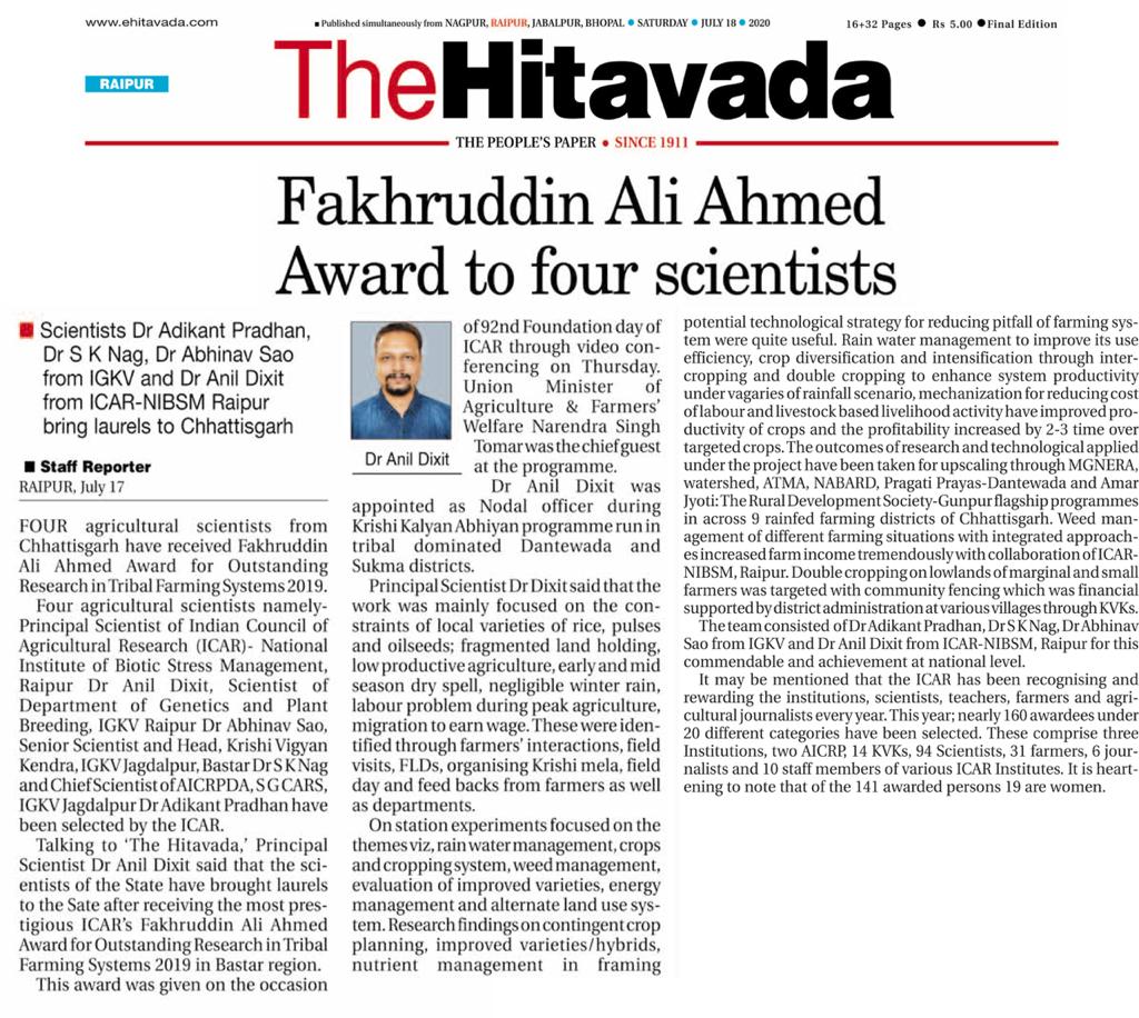 ICAR-NIBSM stands for Chhattisgarh farmers amid COVID 19 lock down